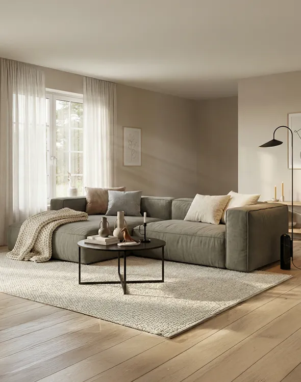 Ich bin ein Sofa für entspannte Stunden und ein unkompliziertes Miteinander. BRIKSON wirkt einladend und gemütlich, mit einer besonders komfortablen Sitzfläche und einem lockeren Polsteraufbau. Trotz seiner gemütlichen Polsterung bleibt die Optik ruhig und zeitlos. Der hochwertige Tonnentaschenfederkern sorgt für angenehme Punktelastizität und ein unterstützendes Sitzgefühl. Der feste Rücken aus geformtem Schaumstoff ergänzt den Komfort. BRIKSON ist gemacht zum Ankommen, Abschalten und Wohlfühlen – ohne Schnickschnack, einfach bequem.
