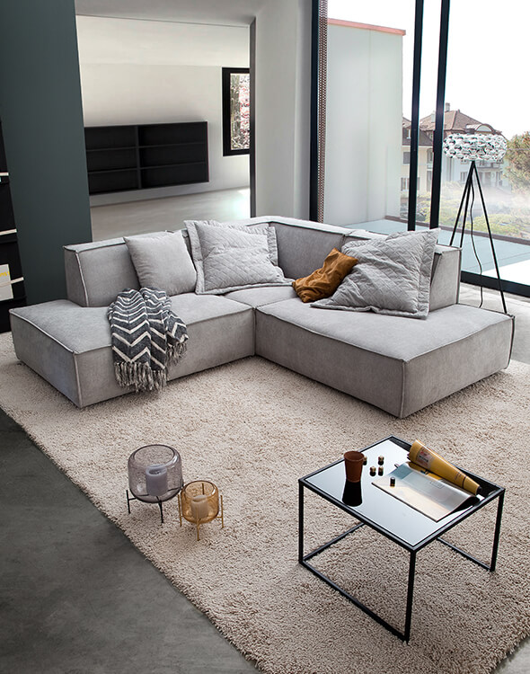 Unser Modulsofa NOHO überzeugt durch die klare, kubistische Formgebung und den hohen Sitzkomfort. Die hohe Blocksitz-Ausführung und besonders natürlich die auffällige Kedernaht verleihen NOHO seinen individuellen, modernen Charakter. Auf einer großzügigen Sitztiefe von 70cm lässt es sich hervorragend entspannen. NOHO ist sowohl in vielen verschiedenen Modelltypen als auch in individuell konfigurierbaren Einzelmodulen erhältlich, so dass sich dieses Sofa wunderbar in jede Wohnsituation einpasst und jeden vorhandenen Raum optimal nutzen kann.