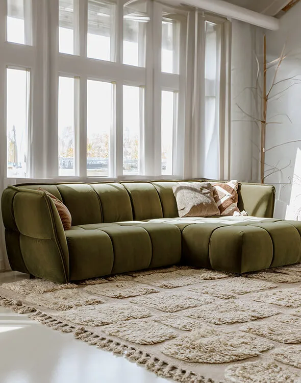 Bei Sofa NUVA trifft coole Eleganz auf luxuriösen Komfort. Dank der hohen Rücken- und Armlehnen sitzt es sich im NUVA wie in einer sanften Umarmung. Die klare Linie der Steppung setzt einen spannenden Kontrast zu der weichen Formsprache. NUVA ist ein echtes Statement-Piece – ob als Sessel, Einzelsofa oder als Eckvariante.
